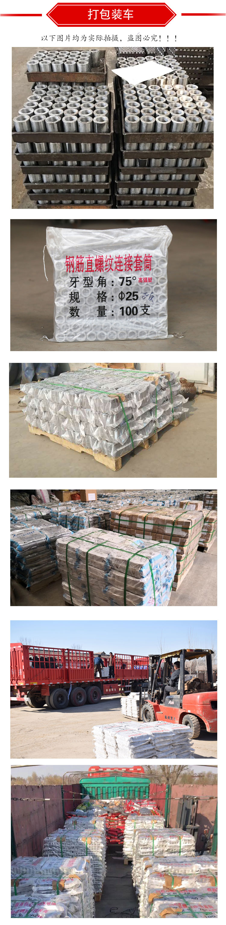 产品详情:钢筋剥皮和滚动直螺纹套筒的连接是一种冷作硬化的方式。用到特别的轧制机轧制钢筋的端部,以使待连接的钢筋的端部时有发生塑性变形并形成螺纹。一种机器连接方式,其中相应的带螺纹的内螺纹套筒将两个钢筋连接在一起。