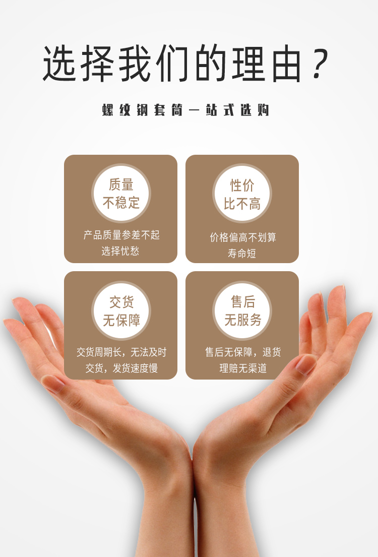 产品详情:螺纹钢socket国标墙要厚,切面要有棱角,外观要笔直。冷head国标墙要薄,截面要光滑弯曲,增进套管其实是钢制的,所以冷head种类比钢管轻得多。