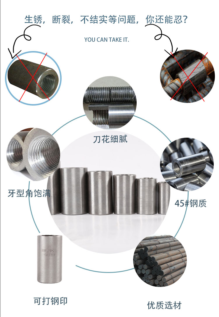 产品详情:增进钢连接套,钢丝末端加工及接头现场施工,无噪声污染,无明火,无烟尘,安全精确。节能环保。装置功率仅3〜4kw,无专用配电设备,无须架设专用电缆,不错的耐低温性能,通过-400c低温测试,全天候施工,不受风,雨,雪等天候条件的影响。