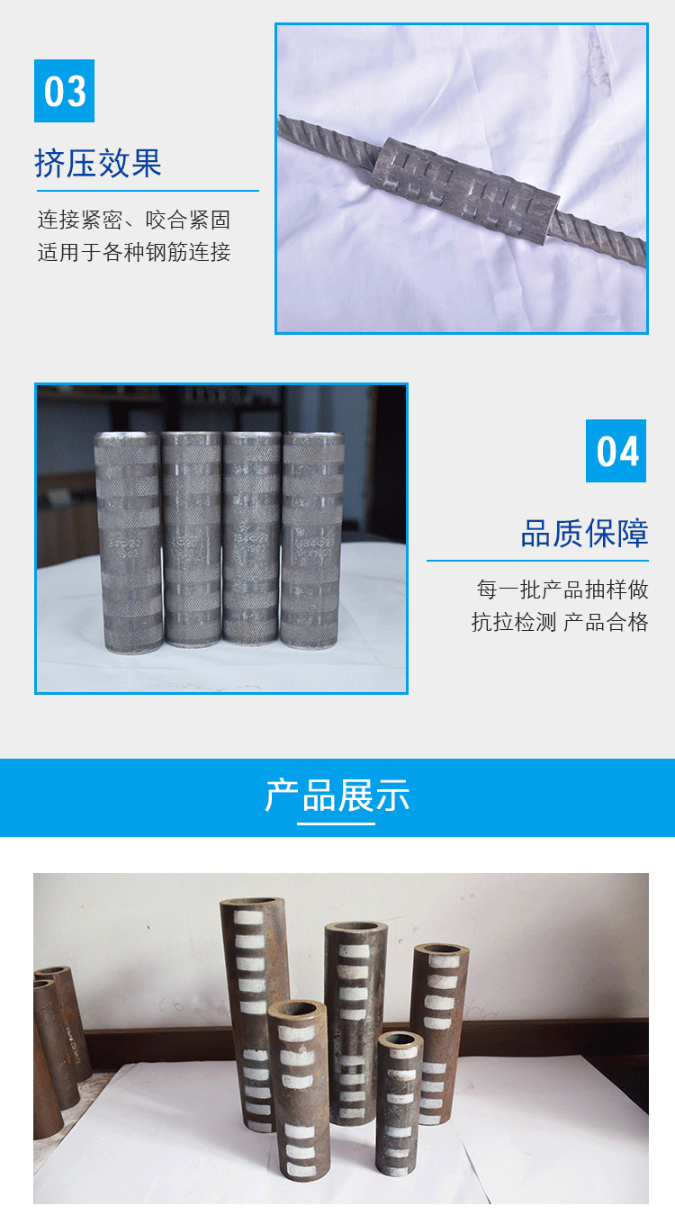 筋cold挤压套筒连接原则用处:挤压过程中,钢筋的挤压表面维持在同一水准线上,并且从中间到两边按挤压依次展开挤压。中间部分预留了两个厘米,因为套筒基准不同,每个套筒的挤压力也不同,欢迎来电咨询。