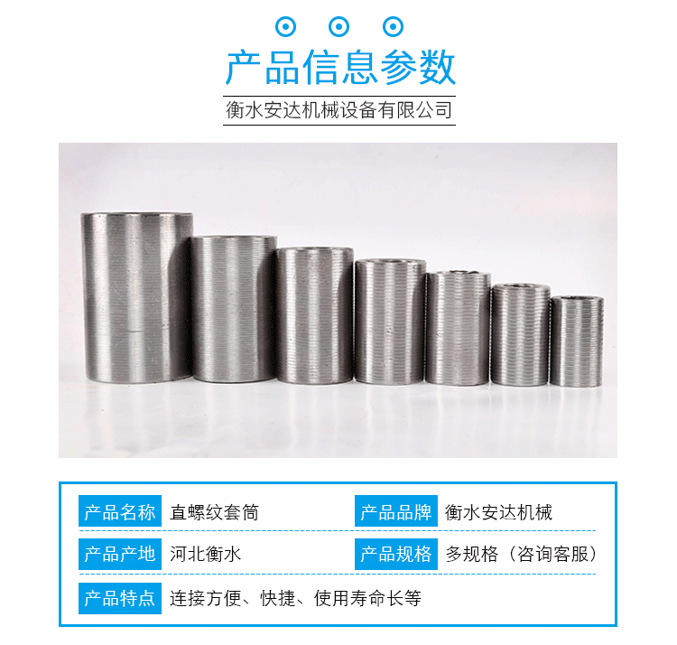产品详情:直螺纹套筒是用以传送钢筋的轴向张力或压力的钢筋机器接头的钢制套管。直螺纹套筒分成直接滚动直螺纹套筒,剥肋滚动直螺纹套筒和up粗直螺纹套筒。